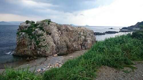 こんにちは。 カルスト地形とニワの浜を見て、次の目的地は隣の「古里の浜」だ。“ 古里 ”と書いて「ごり」と読む。 ニワの浜の吾妻屋から西に向かって細い道がある。それが次の古里の浜へのルートだ。 草がおいしげり地道が見えるのはわずかに20~30セン…