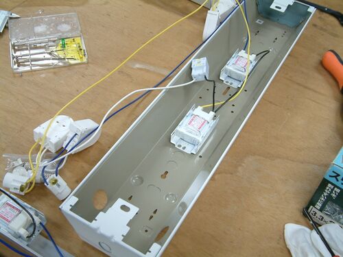 こんにちは。 先日来行っている巨大万華鏡スフィアのパワーアップ。 ステンドホイールの駆動モーター交換取付け前にやっておきたいことがある。 ブラックライト器具の交換だ。 スフィアの宇宙シーンの演出に40Wブラックライトを3基使用しているが、ブラッ…