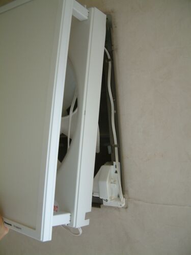 こんにちは。 先週の台風21号で飛ばされた三階換気扇フード、早く修理しないと鉄骨が錆びる。きょうは休館日なので修理に着手する。 換気扇カバーを外す。 本体は綺麗だ。痛んではいない。 本体を外すと、木枠が見えた。雨に濡れて黒くなっている。 木枠は…
