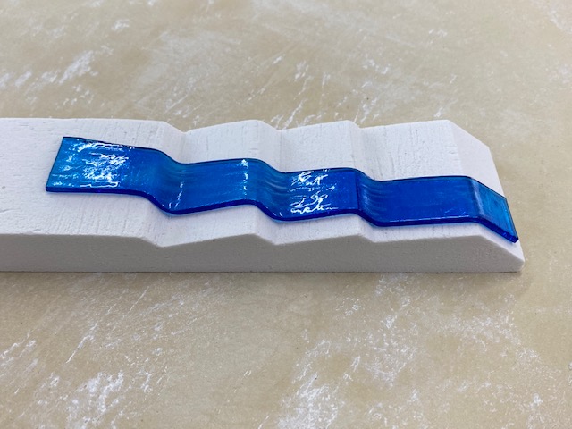 完全に型に密着したスランプにはなっていないが、これ以上高温で焼くとパウダーが完全に板ガラスに溶け込んでしまうのでこれくらいでヨシとしたのだ。