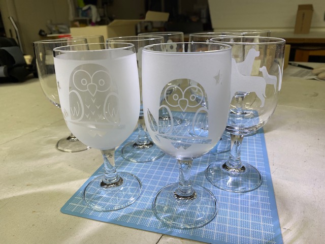 きょうはカミさんがサンドブラストのゴブレットを製作した。
