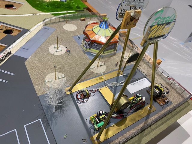 2025-04-22 遊園地の街灯 ジオラマ 日常 こんにちは。 きょうは休館日ですが、外の草取りや必要なものの注文などに時間を取られました。 雑草の伸びるのは早いです。 それでも夜はジオラマの続きをします。 きょうは遊園地の街灯取り付け。街灯はもちろん自作です。 ベンチの配置も変えてみました。 観覧車がまだ分解したままです。 修理をしたからです。 明日はメリーゴーランドと観覧車の配線をします。